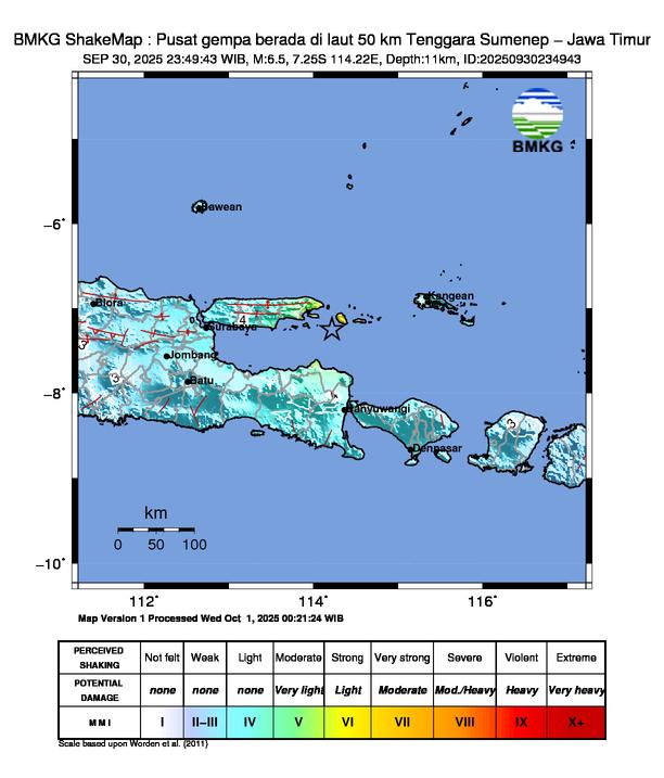 Gempa Kuat M 6,0 Guncang Sumenep Jatim, Dengan 83 Kali Gempa Susulan